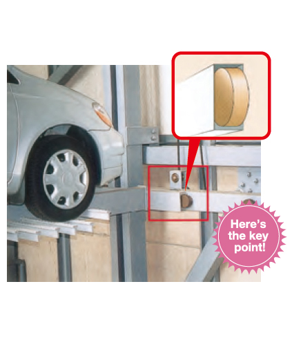 Conventional high-rise parking systems have various problems. The original JFE High-Rise Puzzle Tower provides enhanced earthquake resistance and smooth, speedy parking by utilizing JFE’s unique “comb-shape type” technology, and also features quiet machine operation.