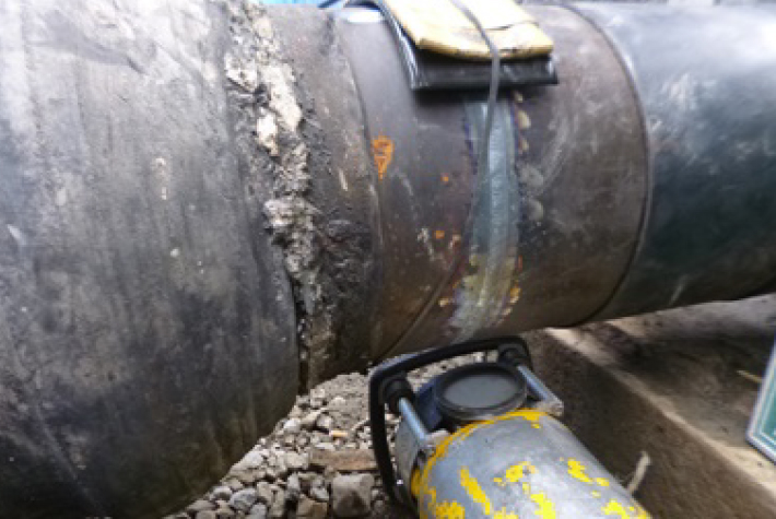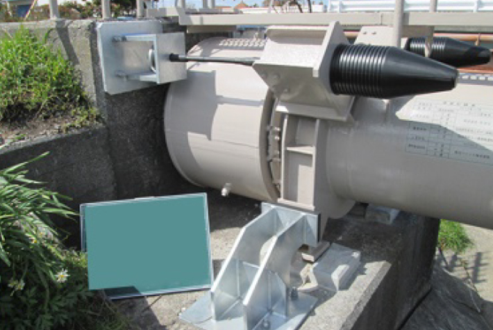 水道管の腐食による断面欠損により部分取替え(水管橋の落橋防止装置設置時に施工)