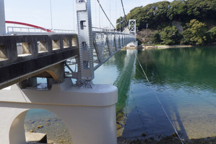 吊橋の耐風索、耐風支索の取替え、床版断面修復、伸縮装置取替え等