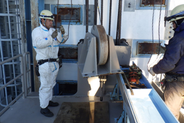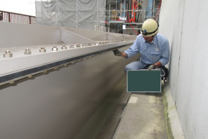 非破壊検査および機械試験を通じて設備の調査・診断を行い、優れた技術とノウハウで設備を安全な状態に保ちます。また、腐食・疲労・劣化を診断して、それぞれに適した補修・補強の提案を行います。 大型クレーン、電動機等の設備診断を行い、余寿命診断の提案も行います。