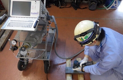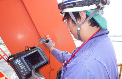 製品の安全性と信頼性を確かめる様々な品質検査サービスを提供しています。鉄鋼製品の強さを調べる機械的性質試験や、材料の成分を分析する化学検査を行っています。製品を壊さずに内部の状態を調べる「非破壊検査」も得意としており、超音波や磁石、特殊な液体などを使って、目に見えない傷や欠陥を発見します。さらに、この非破壊検査技術と他部門の専門知識を組み合わせることで、製品がどれくらい使用できるかを予測する「余寿命診断」も実施し、設備の安全な使用期間を科学的に判断しています。これらの検査は、鋼管や鉄筋だけでなく、橋や建物などの構造物にも応用。高性能な検査機器と熟練の技術者により、製品の品質と安全を守っています。