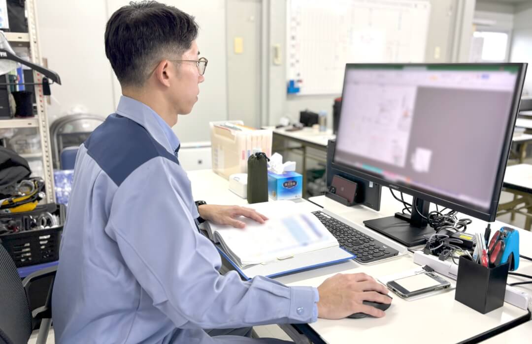 私は下水汚泥処理施設のメンテナンス工事の現場責任者として施工計画や現地施工管理を主として補修提案・見積・調達、工事案件の新規拡大向けた営業と幅広く担当しております。上下水道施設の老朽化により、突発的にトラブルが起きて施設の運用が出来なくなると施設処理区域内の住民の方々に多大な影響を及ぼしかねません。トラブルを未然に防ぎ「快適な生活を守る」それが私の業務です。