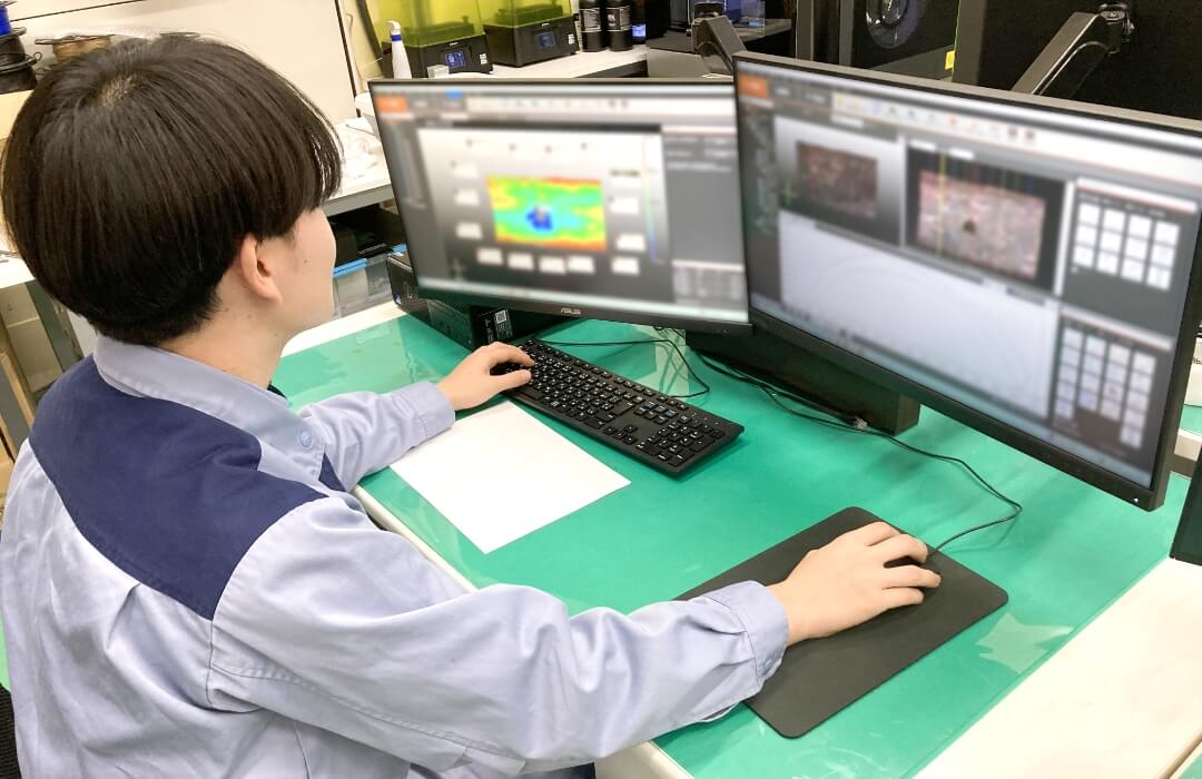 3Dスキャナを使用した計測業務、リバースエンジニアリングにおける製品加工用の3Dモデル作成を担当しています。また外注品の製作管理、樹脂プリンター・光造形プリンターを使用した最終製品の造形も手掛けています。