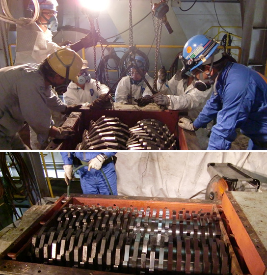 二軸せん断破砕機点検